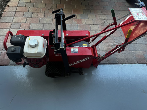 Classen SC18/5.5 18 Gear Drive Sod Cutter with 5.5 HP Honda Engine. Sod cutting is tough work. Done manually it is literally hours of back-breaking labor. The Classen Gear-Drive Sod Cutter makes sod cutting easier than ever thanks to the vibration-reducing design and intuitive controls; leaving level ground to build a new path, walkway, or patio, or to establish new flower beds.